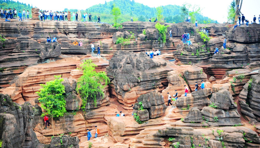 重庆自由行记者获悉,距重庆酉阳县城37公里的红石林地质公园,今年5月1日将正式对外开放,五一假期想出去走走的市民,不妨前去一睹红石林的壮观之景。据了解,红石林地质公园位于风景如画的酉水河右岸,全长约2公里。红石林带以岩溶地貌、峡谷地貌、地层剖面为主,色泽殷红暗紫,景观千姿百态,或层层叠叠,或嵯峨嶙峋,或巍然高耸,有的如天然石龟,栩栩如生,有的如敦煌壁画,斑斓辉煌,其层层叠叠,鬼斧神工,形态各异,美不胜收,令人留连忘返。
