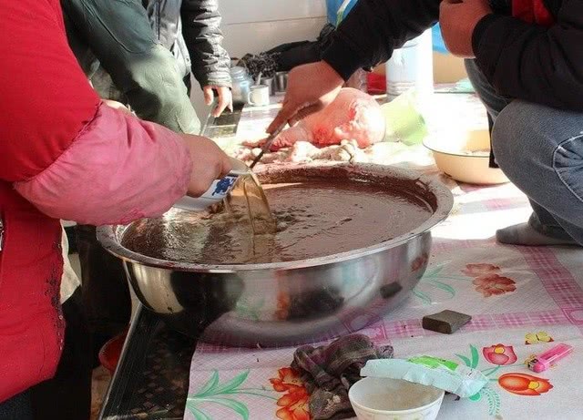 做法:把生猪血放入盆内,凝成块的要划碎;白肉汤烧热,加入精盐、花椒、味精、胡椒面,搅拌均匀晾凉;过箩后倒在猪血盆内,并加香菜末搅拌均匀;灌入洗净的肠子内,用线绳把口捆好;把准备好的肠子在清水锅内烧煮开,开锅后用慢火煮15分钟取出,用冷水泡凉,把线绳解去即成。