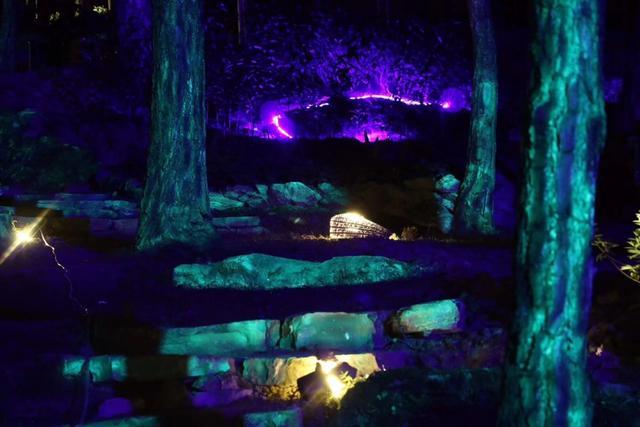 夜幕降临时,林下花园以声、光等特效与园中树木、花卉、奇石、草坪完美结合,唯美唯幻,在这梦幻的环境中说不定能调动你的童心。