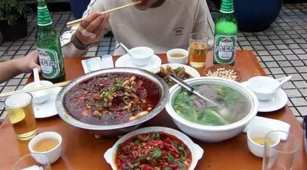 《火锅英雄》的片名就带着浓浓的重庆味儿,仿佛能闻见毛肚在滚烫的牛油锅里捞出来的香味。重庆火锅麻辣醇香,食材丰富,荤有毛肚鸭肠脑花耗儿鱼,素有豆腐芍皮豆芽藤藤菜,酒类有重啤山城国宾江小白,饮品有唯一凉虾凉糕绿豆汤……吃火锅时一家人、朋友、同学、情侣聚在一起围炉,一口毛肚一口酒才是地地道道的“重庆味道”,这种特殊的味觉符号早就刻在重庆人的胃里,不管走到哪儿,火锅配小酒就是家乡。