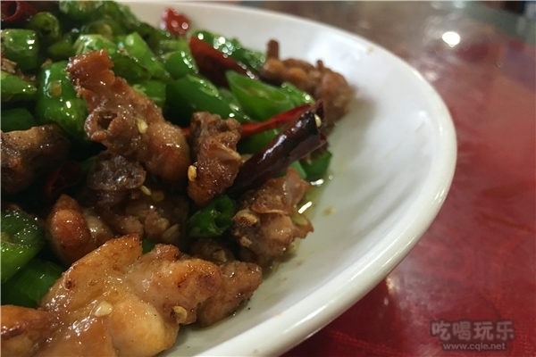 尖椒鸡虽然等最久,但是现炒出的尖椒鸡,外酥里嫩的鸡肉搭配尖椒的辣与香,很下饭。嬢嬢一个劲儿的推荐她们的招牌耗儿鱼,但是耗儿鱼炸的过久并不会嫩,并没有现象中那么好吃。