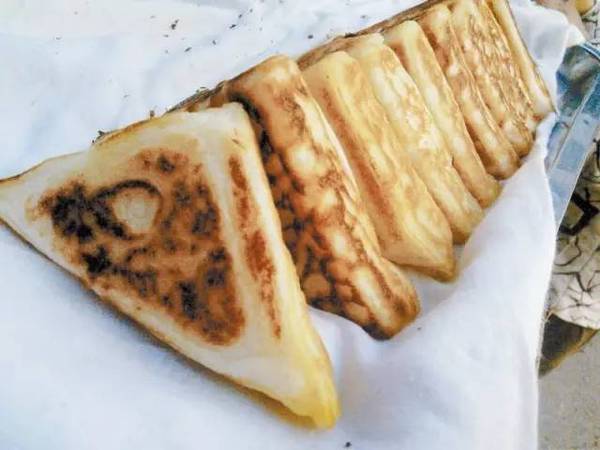 同样重庆最传统的早饭,三角粑其实就是白糕的升级版。都是以大米为主料,再用专业的锅复煎烤,一个形状象一个直角三角形的粑粑就好了。刚烤出来的更好吃哦!