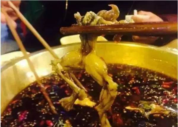 重庆人:重庆哪个地方还没有个吃美蛙鱼头的地方,美蛙个头硕大,肉质细嫩,在配上重庆火锅特有的麻辣,椒麻鲜嫩,吃的人是根本停不下来