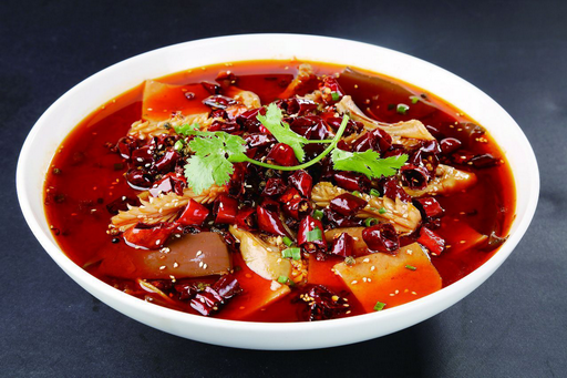 毛血旺以鸭血为制作主料,烹饪技巧以煮菜为主,口味属于麻辣味。起源于重庆,出自重庆市沙坪坝区磁器口镇,一个保留了重庆古老码头文化的小镇,流行于重庆和西南地区,是一道著名的传统菜式。将毛肚、黄喉、百叶、鸭血旺……放入锅中一起煮,其味道麻、辣、鲜、香四味俱全。