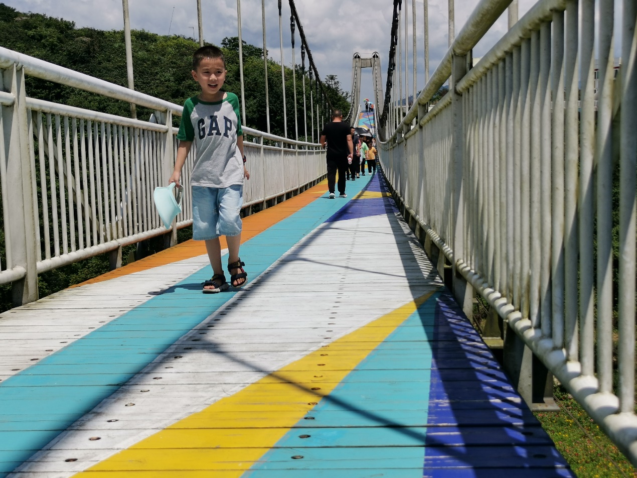 游客们通过同心桥,感受甩甩桥项目带来的刺激享受。