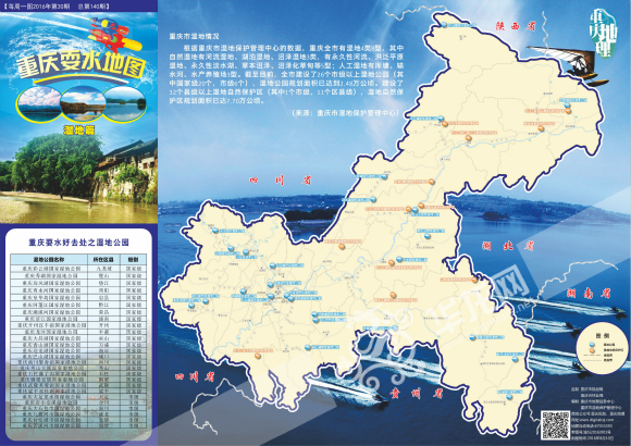 据了解,《重庆耍水地图之湿地篇》主要表现了重庆现有的26个国家级和市级湿地公园,以及12个湿地自然保护区。市民闲暇之余,可以带上这幅图,与家人朋友一起,到市内各处湿地公园耍水休闲,让身心融入自然,体验山与水带来的神清气爽。