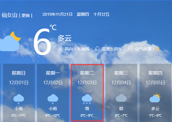 最新天气预报信息,今天仙女山第一场雪在12月3日即将来临,还等什么?赶紧计划准备领略南方的北国风光。