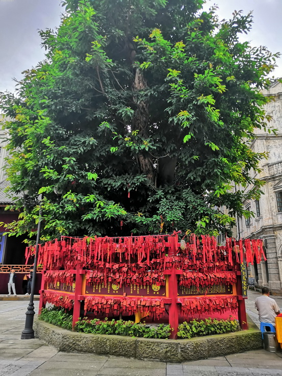 许愿树周围挂满了红牌,红牌上都是游客许愿挂上去的,有的许愿平安,有的许愿姻缘,这棵树挂满了游客们内心最真实的愿望,是一种寄托。