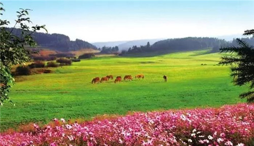 原生态最为明显,草原宽阔,山峦起伏,白云悠悠,牛羊点点,仿佛置身内蒙古大草原上,草场四周林海苍茫。