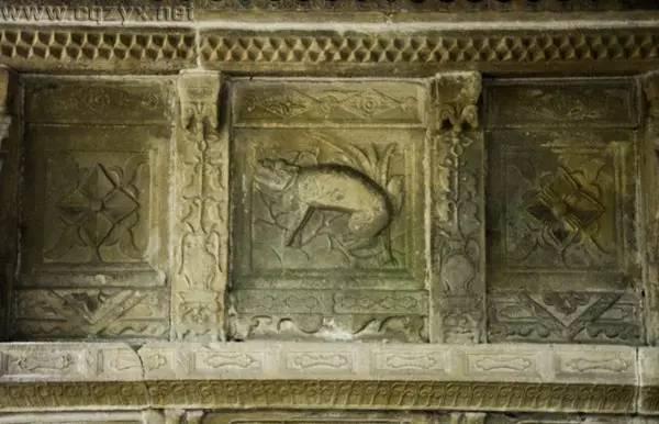 寺前有座浮雕照壁,石雕中图谓巴蕉麒麟图。此照壁古香古色,图案清雅别致,乃是晚唐古物。