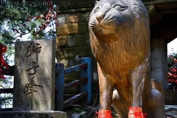 出寺沿山路直上便是狮子峰,海拔864米。峰顶岩石突出嵯峨,山下仰望犹如雄狮一般,故名狮子峰。