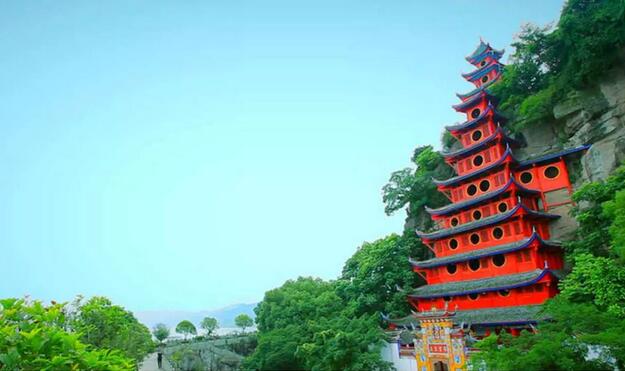 石宝寨位于重庆市忠县境内长江北岸边,被称为“江上明珠”,距忠县城45千米。此处临江有一俯高十多丈,陡壁孤峰拔起的巨石,相传为女娲补天所遗的一尊五彩石,故称“石宝”。此石形如玉印,又名“玉印山”。明末谭宏起义,自称“武陵王”,据此为寨,“石宝寨”由此而来。