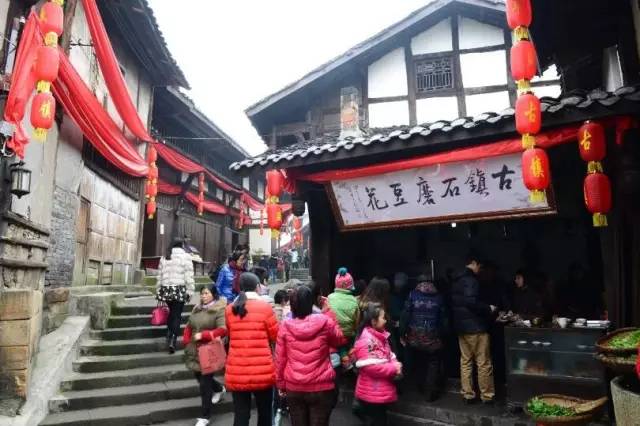 古镇彭氏火烧豆干、刘家四合胡豆、丰盛烧烧酒、胡氏老腊肉、还有川渝特产川菜拌酱、贵妃五仁、牛肉豆豉、红烧牛肉酱、红油辣椒等各种祖传秘制调料,都可以带回家,让你在家就能感受古镇的美味!