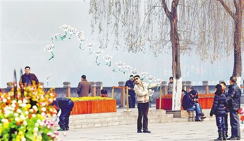 说彩云湖湿地公园是仙境,但绝不是在天上,“天上”二字给人一种难以亲近的感觉,它却老少皆宜,亲切接纳一切,它就在人间。顺着公园往里走,会看到翠绿草地上,年轻人们说笑打闹着席地而坐;老爷爷老奶奶随着古乐打太极拳……放眼望去,整个彩云湖一片翠色,这样的景致才适合带着宝贝们享受春天!